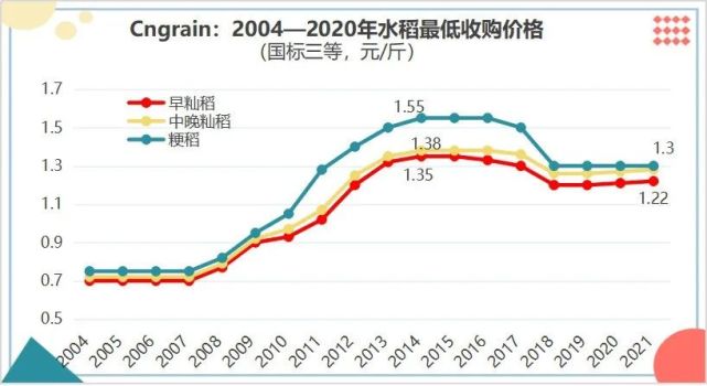 2月26日,國家發改委公布了2021年稻谷最低收購價,2021年生產的早秈稻(三等,下同)、中晚秈稻和粳稻最低收購價分別為1.22元/斤、1.28元/斤和1.30元/斤,秈稻比上年提高一分錢,粳稻維穩不變。