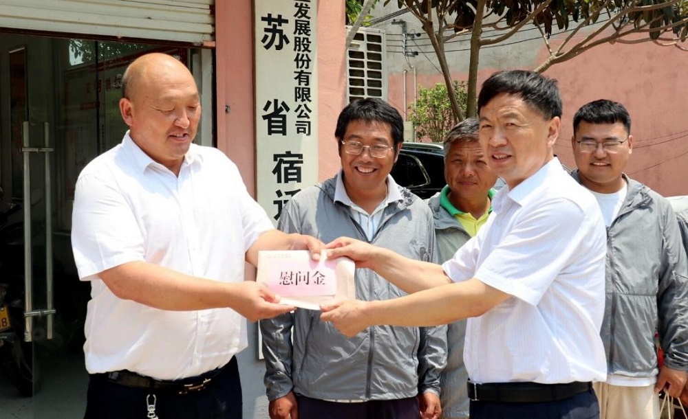 •        夏日炎炎、驕陽似火。帶著對一線職工的牽掛,7月14日,蘇墾農(nóng)發(fā)黨委副書記、工會主席倪志愿一行到蘇墾農(nóng)發(fā)宿遷分公司開展“送清涼”、“送安全”走訪慰問活動,看望奮戰(zhàn)高溫的一線管理人員,宿遷分公司相關(guān)領(lǐng)導(dǎo)陪同。