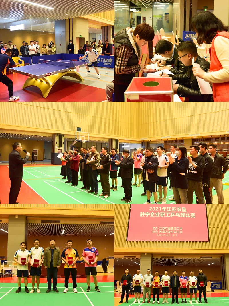 12月17日,由江蘇農(nóng)墾集團(tuán)有限公司工會(huì)主辦,蘇墾農(nóng)發(fā)公司工會(huì)協(xié)辦的2021年江蘇農(nóng)墾駐寧企業(yè)職工乒乓球比賽在蘇墾大廈職工活動(dòng)中心圓滿落幕。集團(tuán)公司黨委委員、工會(huì)主席楊義林出席活動(dòng)并講話。集團(tuán)公司工會(huì)副主席姚海洪主持活動(dòng),共有11家駐寧企業(yè)單位32名選手在此次男子單打比賽中揮拍競技,一決高下。蘇墾農(nóng)發(fā)乒乓球隊(duì)共派出8人參賽,其中2人斬獲冠軍和3人奪得季軍。