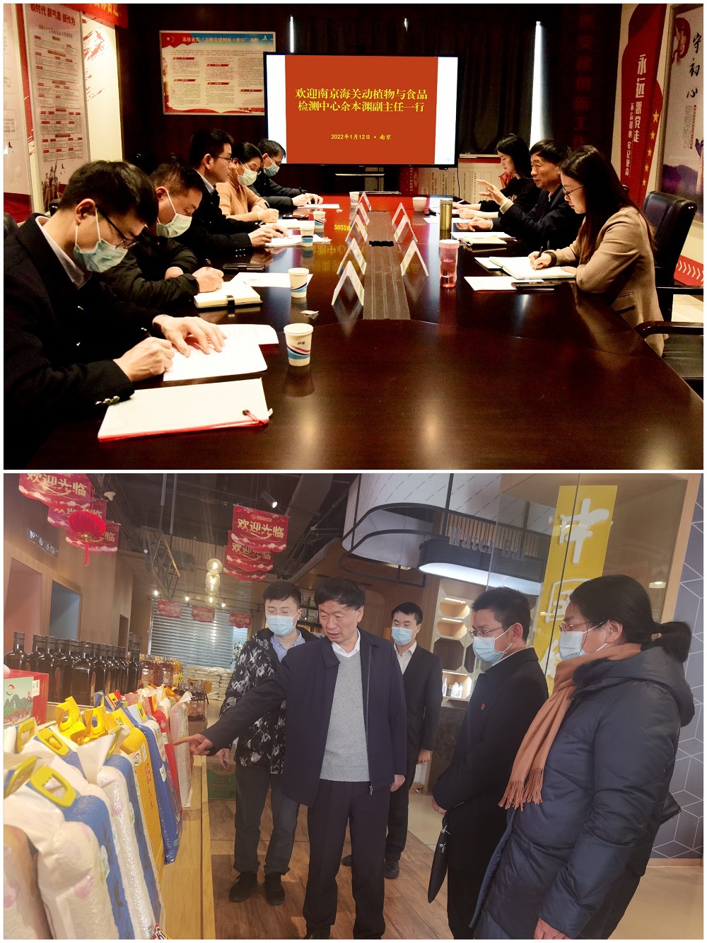 1月12日,南京海關(guān)動植物與食品檢測中心余本淵副主任一行5人來到蘇墾農(nóng)發(fā),參觀學(xué)習(xí)、交流探討黨建工作。蘇墾農(nóng)發(fā)黨委副書記、工會主席倪志愿陪同參觀交流。