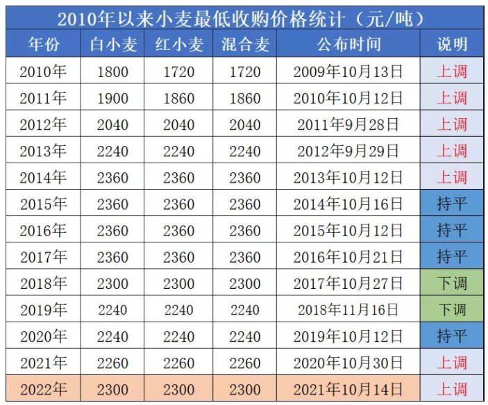 • 12022年小麥最低收購價1.15/斤,上漲2分!
