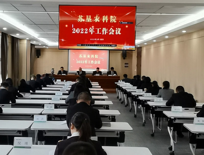 • 3月7日,蘇墾農科院2022年工作會議在南京召開,會議堅持以習近平新時代中國特色社會主義思想為指導,全面貫徹黨的十九大、十九屆歷次全會和省第十四次黨代會精神,認真落實集團公司、農發公司2022年工作會議精神和全面從嚴治黨工作會議精神,總結2021年工作,部署2022年工作任務,動員全院上下勇擔新使命,奮進新征程,以高質量的科研支撐蘇墾農發全產業鏈一體化擴量發展。蘇墾農科院院長王俊仁出席并講話,副院長周鳳明作科研工作報告,資產財務部作科研經費使用情況工作報告,副院長張正東主持會議。