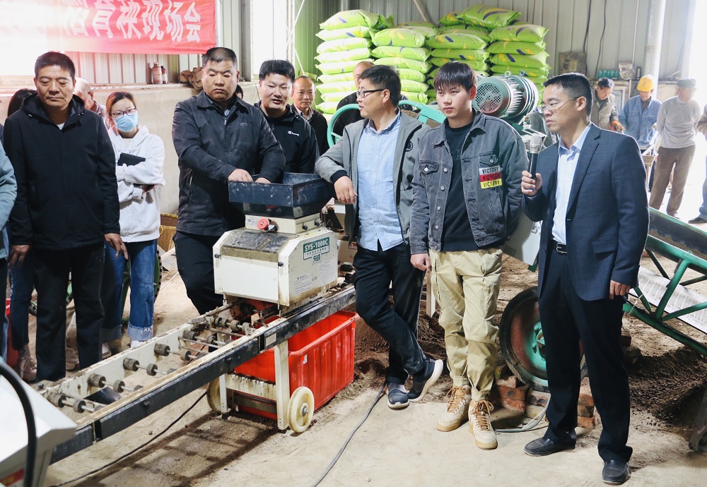 針對(duì)東壩頭2022年水稻育秧全局工作,滕金平提出“充分準(zhǔn)備、周密調(diào)試、確保質(zhì)量”十二字方針。他強(qiáng)調(diào),當(dāng)前,育秧大幕已經(jīng)拉開,開弓沒有回頭箭、一播無法再后悔,決不用犧牲質(zhì)量換取成本。一要做足充分準(zhǔn)備,密切關(guān)注天氣變化和疫情形勢(shì),各農(nóng)業(yè)大隊(duì)做好每日育秧準(zhǔn)備工作(含拌種、操作流程和營養(yǎng)土基質(zhì)等水份),以“開局決定全局”的氣魄踐行高質(zhì)量育秧行動(dòng);二要狠抓周密調(diào)試,做好農(nóng)機(jī)具設(shè)備特別是新機(jī)型的調(diào)試,同時(shí)吸取往年經(jīng)驗(yàn)教訓(xùn),緊盯9日-22日育秧黃金期,保障育秧全過程零失誤、無差錯(cuò);三要確保質(zhì)量。樹牢“質(zhì)量是育秧的關(guān)鍵”思想不動(dòng)搖,確保質(zhì)量到環(huán)節(jié),一日即決定千畝大田秧苗質(zhì)量,切實(shí)狠抓大隊(duì)間、批量間和每日間的質(zhì)量平衡,堅(jiān)持打勝育秧質(zhì)量關(guān),為奪取今年水稻(超)高產(chǎn)夯實(shí)堅(jiān)實(shí)的基礎(chǔ)。