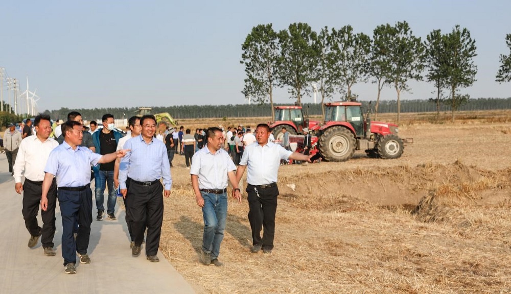 •        6月13日,江蘇省農業技術推廣總站站長管永祥和省市相關農業農村部門負責人、科研院所專家一行80余人蒞臨蘇墾農發黃海分公司觀摩指導。江蘇省農墾集團有限公司農業發展部部長劉衛華、蘇墾農發種植業管理中心總經理徐啟來、黃海農場公司主要領導等陪同。