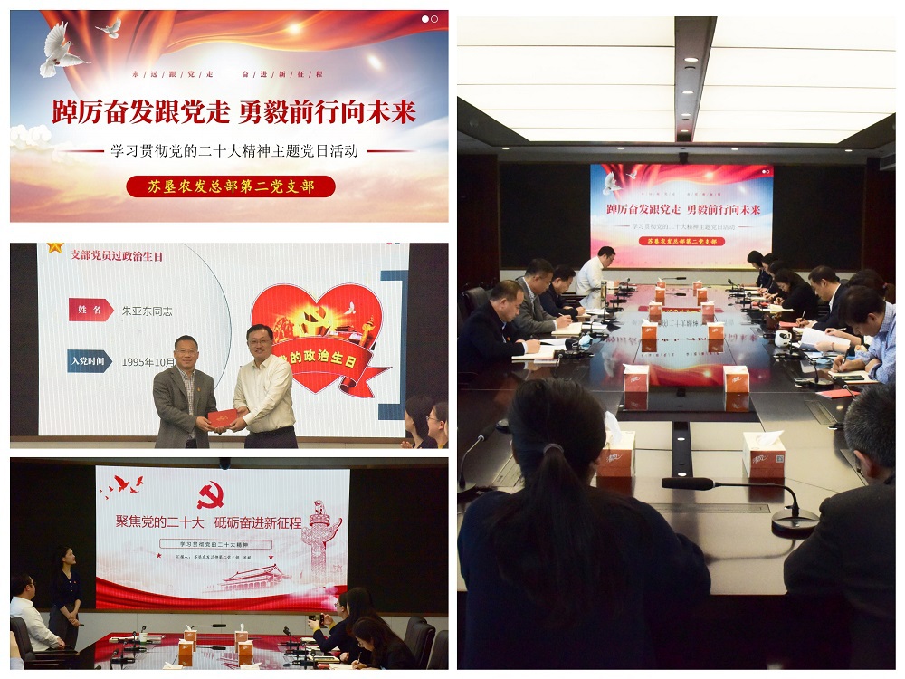為深入學習貫徹黨的二十大精神,讓大會精神帶著熱氣深入到每個黨員心中,10月25日,蘇墾農發總部第二黨支部開展“踔厲奮發跟黨走 勇毅前行向未來”主題黨日活動。
