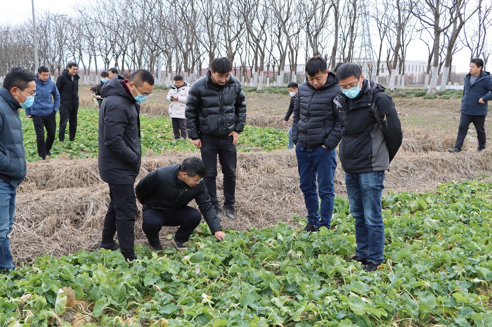 1月10日-11日,蘇州蘇墾總經理丁榮根帶領各生產基地負責人深入田間,開展小麥、油菜苗情調查并召開現(xiàn)場技術交流會。本次技術交流會邀請?zhí)K墾農發(fā)種植業(yè)管理中心總經理助理秦建華和業(yè)務經理葛猛到現(xiàn)場進行技術指導。