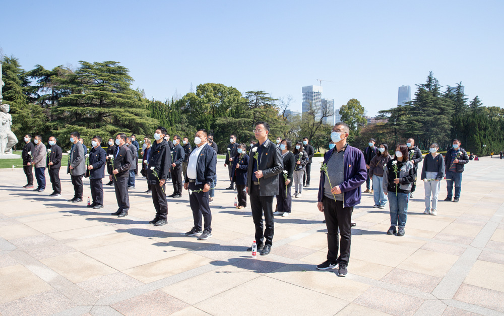 在龍華革命烈士陵園,全體黨員首先整齊列隊在“丹心碧血為人民”紀念碑廣場,舉行致敬英烈的祭掃儀式。在莊嚴肅穆的國歌后,蘇墾農發南通分公司黨總支向紀念碑敬獻了花籃,全體人員三鞠躬向英雄們致敬并獻花,深切緬懷革命先烈。