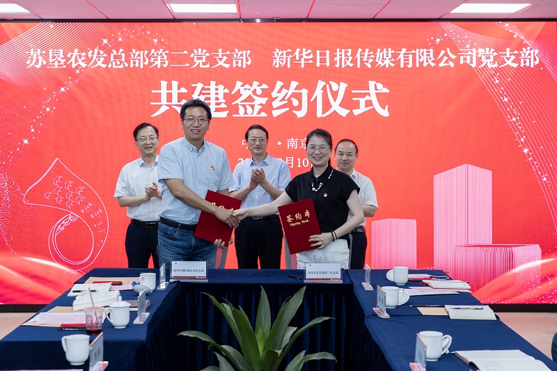 在新華日報傳媒有限公司黨支部書記、新華日報社(集團)編委、新華日報傳媒有限公司總經理樊萬朝和蘇墾農發黨委副書記、工會主席王進強與黨委委員、紀委書記朱江勝見證下,雙方支部簽訂了共建協議。