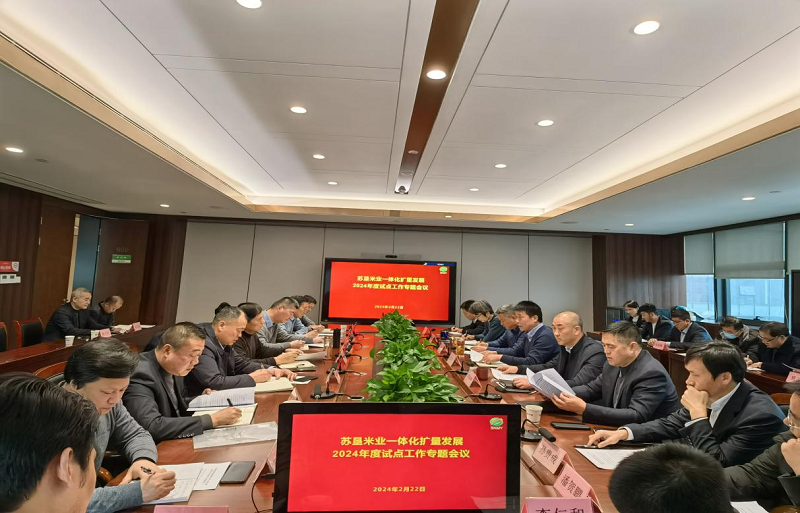 2月22日上午,蘇墾米業召開一體化擴量發展工作專題會議,認真貫徹落實蘇墾農發一體化擴量發展工作要求,研究部署公司2024年度試點工作實施方案,動員公司上下要齊心協力、精心謀劃,協同推進、合力攻堅,全面完成一體化擴量年度試點目標任務。黨委副書記、總經理許海峰作工作布置講話,黨委副書記郭海亮作總結講話。會上對《蘇墾米業一體化擴量發展2024年度試點工作實施方案》和《蘇墾米業一體化擴量糧食回購業務操作手冊》進行了解讀,并對一體化擴量糧食回購工作在規范操作、風險管控等方面作了說明要求。