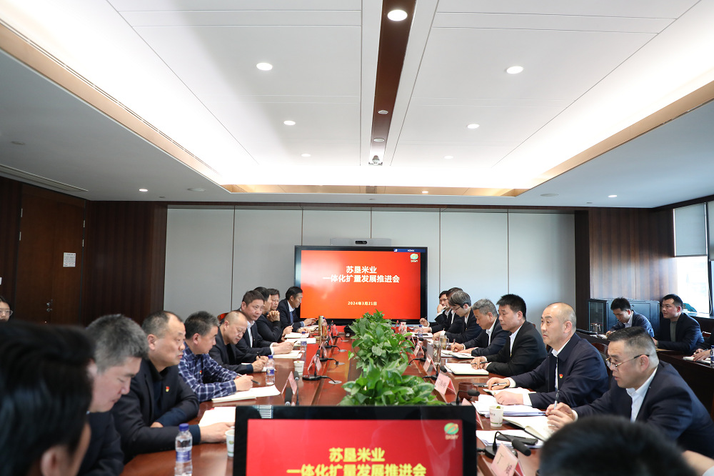 •        3月21日,蘇墾米業在總部召開一體化擴量發展推進會。會上10家分子公司就當前一體化擴量糧食回購工作做了詳細匯報。公司一體化領導小組成員等相關人員出席會議。