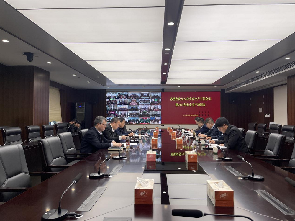 •        3月26日下午14時30分,蘇墾農發召開2024年安全生產工作會議暨2024年安全生產培訓會,會議以視頻會議方式召開,主會場設在蘇墾大廈1208會議室,各分、子公司和農科院設分會場,公司安委會成員,分、子公司和農科院安委會(安全生產領導小組)成員、安全員參加了本次會議。會議由公司總裁、安委會主任丁濤主持。