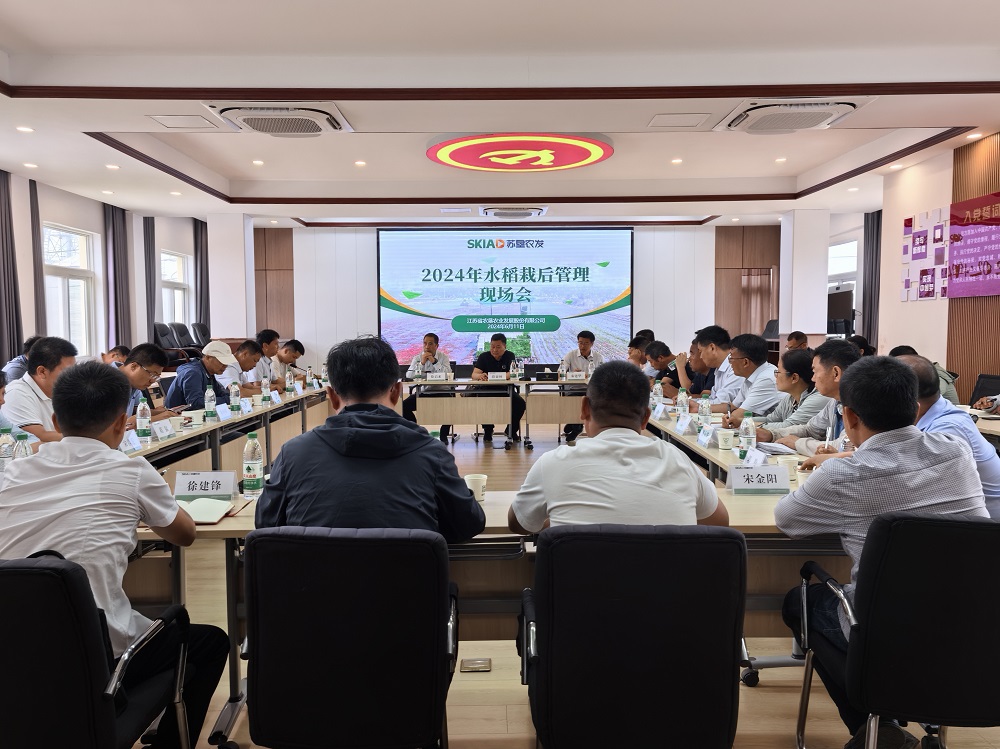 •        為進一步強化水稻栽后即管,實現壯苗早發,為今年秋熟作物豐產豐收打下堅實基礎,6月11日下午蘇墾農發鹽城和淮安片區2024年水稻栽后管理現場會在復興圩召開。蘇墾農發公司黨委書記朱亞東、蘇墾農發公司副總裁徐啟來一行參加會議并講話,蘇墾農發復興圩分公司總經理薛亞林等相關人員陪同。