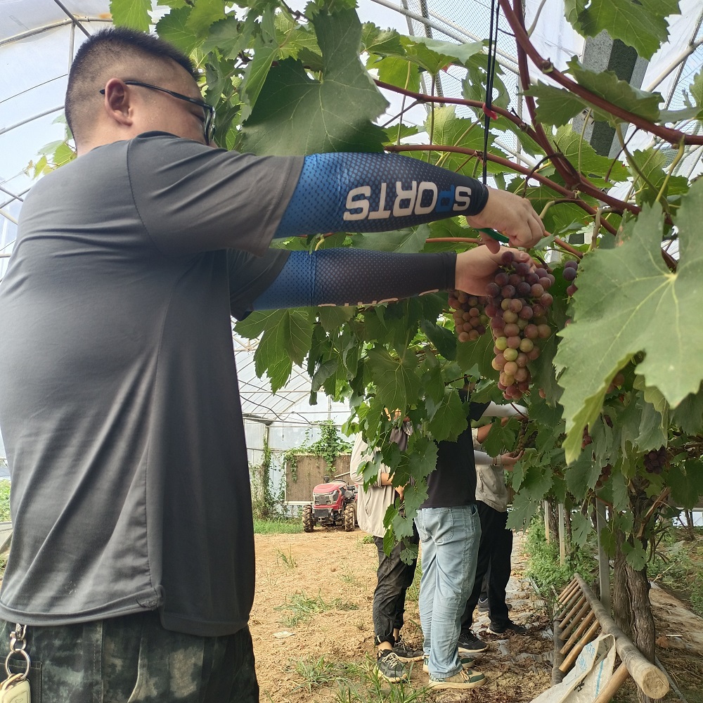 消息一經傳出,淮海分公司工會立即發出志愿者召集通知,志愿者們紛紛響應,踴躍報名前來幫忙,在解建空的指導下,志愿者很快掌握了采摘技巧,他們身著樸素衣物,手持剪刀,小心翼翼地剪下一串串飽滿多汁的葡萄,剪刀的開合聲在寂靜的葡萄園里顯得格外清脆,奏響了一曲勞動樂章。