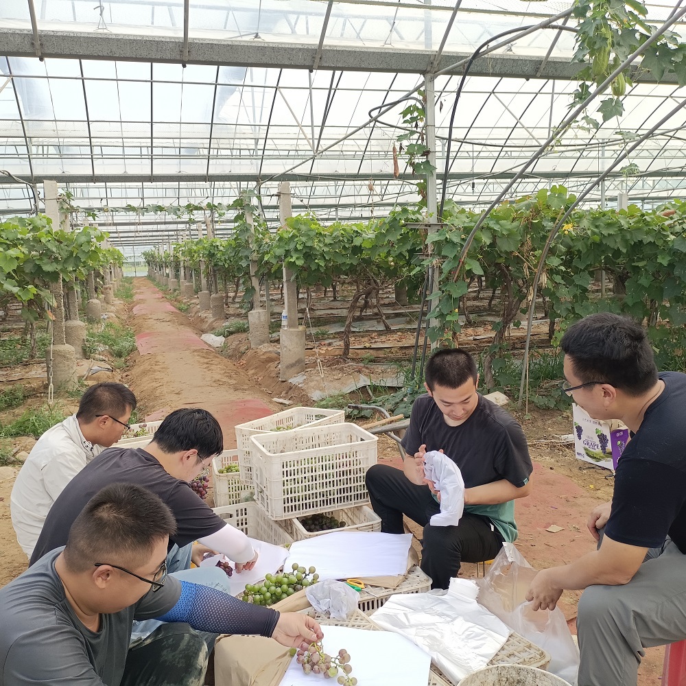 • 8月7日凌晨五點,淮海還在晨露的輕撫下沉睡,一群志愿者的身影已經出現在了高效園葡萄種植基地的田間地頭。