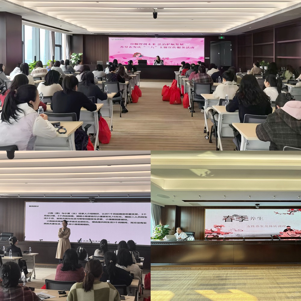 活動開設了女職工普法宣傳和“專家面對面”送知識送健康講座。省婦聯“雙護”律師戴小芳從女職工職場權益保護、女性婚姻權益、生活中的民法典、財產繼承、女性特殊權益保障等方面以案說法,為女職工們帶來了一場別開生面的普法課堂,指導女職工們依法維護好個人合法權益。同仁街社區衛生服務中心副主任中醫師顏蕓從四季養生、女性健康保健、常見病調理等方面給女職工們帶來一場充滿溫情與關愛的中醫養生健康講座,引導和幫助女職工樹立科學健康的生活理念。講座環節還進行了法律知識互動答疑、中醫把脈問診等,活動內容貼近生活,實用性強,深受在場女職工的歡迎。