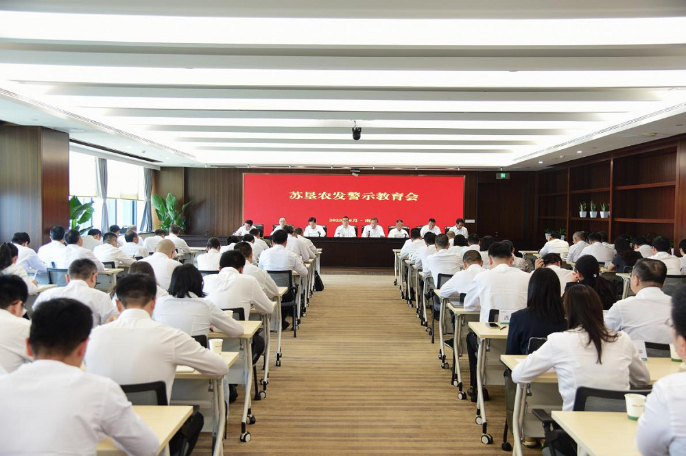 •        6月26日,蘇墾農發召開2025年警示教育會,會議深入學習貫徹習近平總書記關于加強黨的作風建設的重要論述和中央八項規定及實施細則精神,落實全省、集團警示教育會議部署要求,通過深度剖析典型案例,推進深入貫徹中央八項規定精神學習教育走深走實,教育引導黨員干部知敬畏、守底線,持續鞏固風清氣正、干事創業的政治生態,為蘇墾農發各項事業的穩步推進提供堅實保障。集團總經濟師,蘇墾農發黨委書記、董事長朱亞東出席會議并講話,集團黨委委員,蘇墾農發黨委副書記、總裁丁濤主持會議。公司領導班子成員,子公司領導班子成員,各部門副總經理及以上人員,大華種業、蘇墾米業、蘇墾農服3家單位的財務、審計、人力資源、紀委辦負責人,總部全體工作人員參加會議。