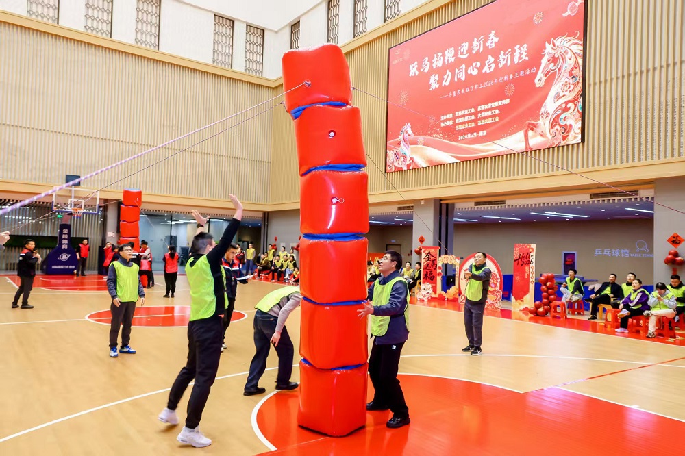 風(fēng)采表演結(jié)束后,活動(dòng)進(jìn)入趣味運(yùn)動(dòng)環(huán)節(jié)。“穩(wěn)中求進(jìn)”“全力以赴”“步步高升”“繩采飛揚(yáng)”“同心共濟(jì)”“青苗接力”等項(xiàng)目集競(jìng)技、協(xié)作與趣味于一體,各參賽隊(duì)你追我趕、配合默契,現(xiàn)場(chǎng)歡呼聲、加油聲此起彼伏。其間穿插的《瘋狂馬拉松》《馬到成功》等大屏互動(dòng)節(jié)目,進(jìn)一步點(diǎn)燃職工參與熱情。壓軸項(xiàng)目“眾志成城”拔河比賽將活動(dòng)推向高潮,參賽隊(duì)伍全力以赴、奮勇拼搏,場(chǎng)下吶喊助威聲浪迭起。經(jīng)過激烈角逐,米業(yè)一隊(duì)、農(nóng)服隊(duì)、農(nóng)發(fā)一隊(duì)?wèi){借總成績(jī)前3名分別拿下趣味運(yùn)動(dòng)比賽團(tuán)體冠軍、亞軍和季軍。